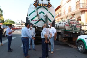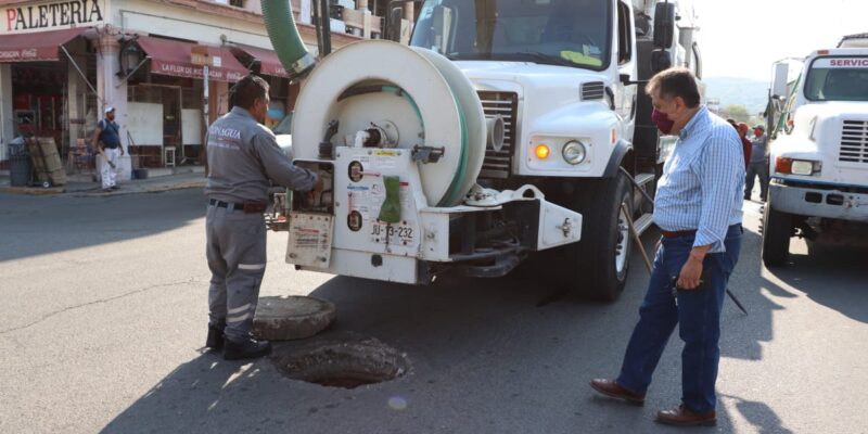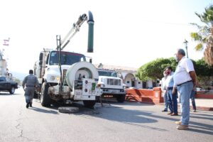 En el primer cuadro de la ciudad estuvieron, las autoridades de servicios municipales; el titular de Capama, Homero Gómez Rubí; los integrantes de la junta de Gobierno y el alcalde, Cruz Lucatero, quién destacó la actividad correctiva y preventiva de desasolve con el camión tipo Vactor es histórica en el municipio.