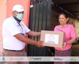 Remarcó a la par que estos apoyos derivan del Eje 2 Uruapan Sin Hambre del Plan Uruapan Responsable, en el cual suman esfuerzos las Cámaras de Comercio, Servicios y Turismo (Canaco Servytur) delegación Uruapan y Nacional de la Industria de Transformación (Canacintra) Uruapan, la Asociación de Productores Empacadores Exportadores de Aguacate de México A. C. (Apeam), sociedad civil organizada, iniciativa privada y Gobierno Municipal.