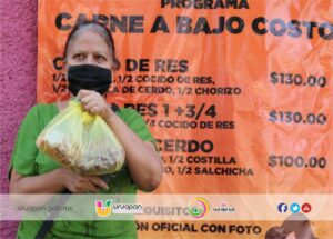 Detalló que los paquetes de carne son: Combo de Res, incluye medio kilo de bisteck, medio kilo de cocido de res, medio kilo de costilla de cerdo y medio kilo de chorizo por 130 pesos; Combo de Res 1 más tres cuartos, incluye un kilo de bicteck y tres cuartos de cocido de res por 130 pesos; Combo de Cerdo, incluye medio kilo de bisteck de cerdo, medio kilo de costilla de cerdo, medio kilo de chorizo y medio kilo de salchicha de pavo por 100 pesos y uno más que incluye 1 kilo de arrachera más un kilo de chorizo por 140 pesos.