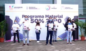 Uruapan, Mich; Viernes 24 de Julio de 2020.- En apoyo a la economía familiar y al mejoramiento de vivienda de los sectores más vulnerables de la población, el Presidente Municipal de Uruapan, Víctor Manuel Manríquez González, dio el banderazo de arranque del programa municipal “Material al 50%”, que en este 2020 cuenta con un presupuesto de 7 millones 100 mil pesos y beneficiará a más de 2 mil familias uruapenses.