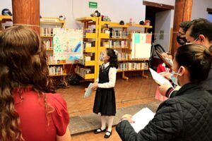 La Biblioteca Pública “Lic. Justo Sierra” fue la sede de la deliberación del concurso organizado por Autoridades Municipales y la Honorable Junta Cívica y Patriótica Municipal 2020, al cual dio la bienvenida la secretaria de Desarrollo Social, Perla del Río Ambriz, quien mencionó la importancia de estas actividades para fomentar el sentir patrio, tal y como lo ha instruido el alcalde Miguel Ángel Paredes Melgoza.
