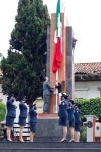Acompañado por la Presidenta Ejecutiva de la Honorable Junta Cívica y Patriótica, Eréndira Zacarías Zepeda, se rindieron los honores a nuestro Lábaro Patrio y se colocó la ofrenda floral en honor a los héroes que nos dieron patria y libertad.
