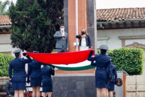 Uruapan, Mich; Domingo 27 de Septiembre del 2020.- El Presidente Municipal, Miguel Ángel Paredes Melgoza, encabezó esta mañana el izamiento de nuestra Bandera Nacional en el marco del 199 Aniversario de la Consumación de la Independencia de México.