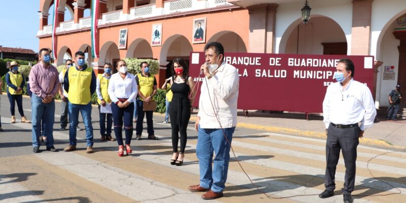 Apatzingán, Mich., a 30 de septiembre de 2020.- Con la finalidad de mantener una vigilancia mayor en la aplicación de las medidas contra el Covid-19, el alcalde José Luis Cruz Lucatero, dio inicio a los trabajos del bloque de Guardianes de la Salud Municipal, integrado por empleados del gobierno municipal.