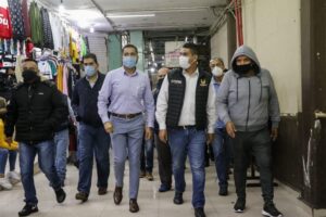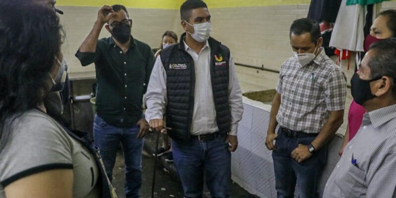 Acompañado por los secretarios del Ayuntamiento, Antonio Chuela Murguía, y de Servicios, Genaro Campos García, el munícipe recorrió primero el Mercado La Charanda, en donde en conjunto con locatarios recorrió las diversas zonas para conocer los aspectos a mejorar en infraestructura.