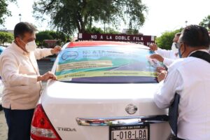 Apatzingán, Mich., a 14 de octubre de 2020.- El presidente municipal, José Luis Cruz Lucatero, dio el inicio de la campaña vial “No a la doble fila”, con la finalidad de evitar embotellamientos y accidentes en las principales calles de la ciudad, así como generar una cultura de respeto hacia automovilistas y peatones.
