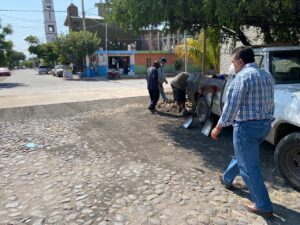 Agregó que también se rehabilitan calles empedradas en la colonia Pénjamo, a la altura de la cancha, con la finalidad de mantenerlas en óptimas condiciones para el beneficio de la ciudadanía.