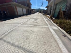 La gira de trabajo inicio en la colonia San José de la Mina, donde se colocó concreto hidráulico en la calle lateral del tramo de la carretera libre Uruapan-Pátzcuaro, acción que prácticamente está concluida.