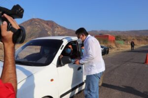 Durante el arranque de los filtros sanitarios, el presidente municipal José Luís Cruz Lucatero, acompañado del secretario de Desarrollo Económico, Guillermo Arreguín; Jesús Rangel de la Policía Municipal y personal de Protección Civil, montaron la revisión y recomendaciones sanitarias a la ciudadanía con la finalidad de inhibir la presencia del Coronavirus.