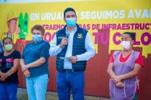 Uruapan, Mich; Viernes 05 de Febrero de 2021.- Con una inversión superior a los dos millones 100 mil pesos, el Presidente Municipal, Miguel Ángel Paredes Melgoza, entregó esta tarde dos obras de infraestructura deportiva y básica en las colonias Hacienda San Rafael y Jardines de San Rafael, mismas que los colonos agradecieron al reconocer que suma al bienestar de los habitantes de la zona.