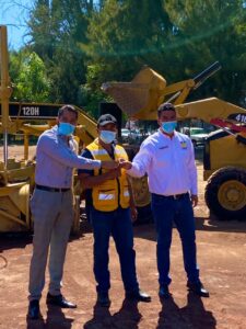 Uruapan, Mich; Miércoles 17 de Febrero de 2021.- Luego de casi 20 años de no equipar al área de Obras Públicas con maquinaria pesada, el Presidente Municipal de Uruapan, Miguel Ángel Paredes Melgoza, entregó una moto conformadora y una retroexcavadora a la Secretaría de Obras Públicas y Movilidad, las cuales fueron adquiridas con inversión municipal de 3 millones 300 mil pesos.