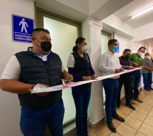 En este marco, el alcalde y la Síndica Municipal, Norma Adriana Magaña Madrigal, entregaron la remodelación de los módulos sanitarios para hombres y para mujeres, que son utilizados por empleados municipales.