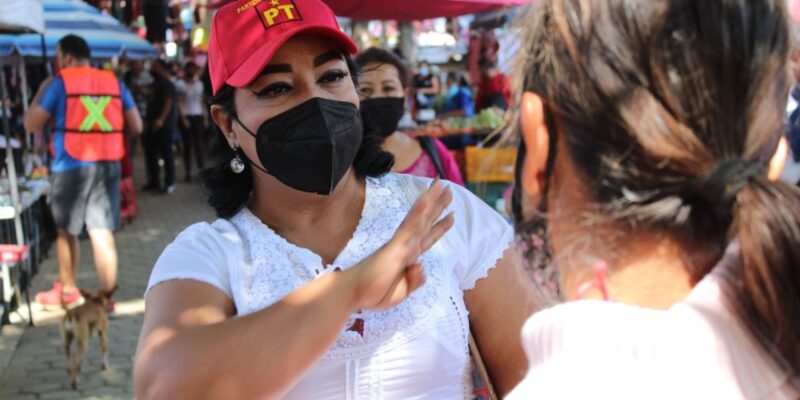 Uruapan, Michoacán.- Con el objetivo de trabajar para que las y los comerciantes que ofrecen sus productos a través de los tianguis del municipio uruapense mejoren su calidad de vida y hagan efectivos sus derechos, la candidata a diputada federal por Uruapan del Partido del Trabajo (PT), Adriana Amezcua Garibay, realizó recorrido este día por el Tianguis de la Tamacua, esto a fin de escuchar al sector comerciante y así poderles compartir también sus propuestas legislativas, mismas que buscará plantear en la Cámara de Diputados a partir del respaldo de la gente este próximo 6 de junio.