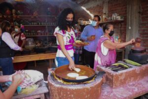 -Fue recibida por Norma Urbina, cocinera tradicional, y Norma Ireri Tungüi, Ireri del Barrio de San Pedro