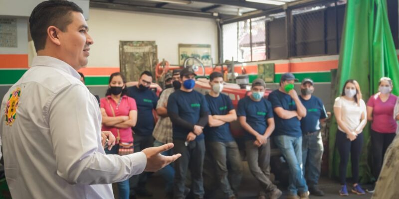 Ante trabajadores de Tractores y Maquinaria de Altas Especificaciones, encabezados por su Gerente, José Cerna, Miguel Paredes hizo suyos los planteamientos de los empleados, quienes expresaron su interés de contar con más espacios públicos en óptimas condiciones para el desarrollo de sus hijas e hijos.