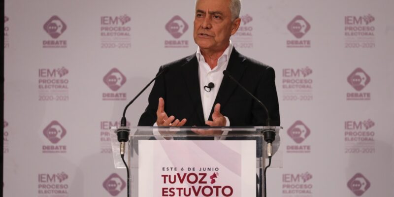 Morelia, Mich., a 21 de abril 2021.- En el primer debate oficial entre aspirantes a la gubernatura, Cristóbal Arias Solís, candidato de Fuerza por México a la gubernatura (FxM), se mostró como un abanderado que va con las manos limpias, libre de dinero manchado o de complicidades con grupos criminales, y ofreció un gobierno de “cero tolerancia” a la corrupción y a la impunidad, con la seguridad pública como su mayor prioridad.