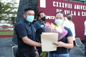 Durante el evento en la plaza principal, la presidenta del DIF Municipal, Minerva Guízar Brito, entregó reconocimientos a los jefes de tenencia de Acahuato, Jaime Álvarez Meza así como el señor