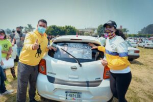 Antonio Lagunas Vázquez, referente del Sol Azteca, estuvo presente en este importante evento, en donde los candidatos realizaron la pega de microperforados en las decenas de unidades que se dieron cita respetando los protocolos sanitarios.
