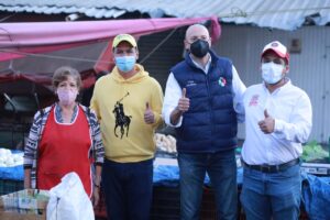 Uruapan, Mich; Martes 4 de Mayo del 2021.- Desde las 6 de la mañana el candidato del Equipo por Uruapan a la alcaldía, Miguel Ángel Paredes Melgoza, estuvo presente en el tianguis de La Mora conociendo de cerca la ardua labor de los comerciantes y poniéndose en sus zapatos para entender su trabajo e inquietudes.