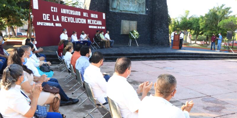 Apatzingán, Mich.- a 20 de Noviembre del 2021.- Al pronunciar el discurso oficial del CXI Aniversario del Inicio de la Revolución Mexicana, el alcalde, José Luis Cruz Lucatero, destacó que a la distancia del México Revolucionario de 1910 se continúa luchando con el presidente de México Andrés Manuel López Obrador, por hacer realidad muchos de los postulados contemplados en la Constitución.