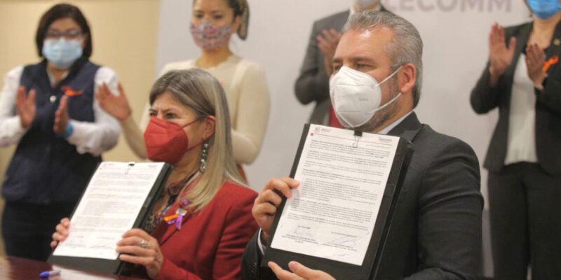 *Morelia, Michoacán, 25 de noviembre del 2021.-* Tras firmar un convenio con Telecomunicaciones de México (Telecomm), el gobernador Alfredo Ramírez Bedolla señaló que se aprovechará la infraestructura de este organismo descentralizado de la federación para hacer llegar a un mayor número de michoacanos los programas de apoyo social.