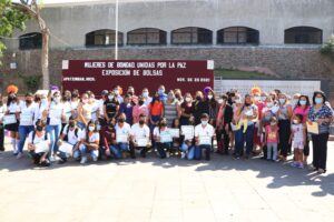 Finalmente, las autoridades inauguraron la exhibición de bolsos pintados de color morado y naranja como símbolo y recuerdo de las mujeres que fueron asesinadas.