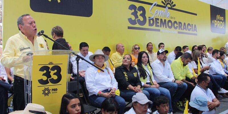 Morelia, Michoacán 9 de mayo 2022.- El dirigente nacional del Partido de la Revolución Democrática (PRD), Jesús Zambrano, en el marco de los festejos por el 33 aniversario de la fundación del también llamado “sol azteca” en Morelia, denunció que en México existe, “un clima de persecución política contra todos los que no piensan igual y que no actúan al contentillo del dictado de Palacio Nacional”.