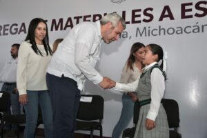 “Gracias al apoyo del Gobierno de la República, poco a poco vamos saliendo adelante en Aguililla, falta mucho por hacer, pero estamos avanzando y hoy apoyamos a las escuelas con butacas, pintura, y material escolar en favor de la educación de miles de niñas y niños”, comentó.