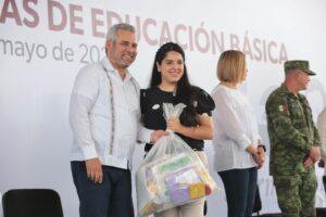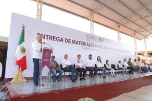 En este municipio que cuenta con 73 escuelas de nivel básico y medio superior, que brindan educación a casi 4 mil alumnos con el apoyo de 184 docentes maestras y maestros, el gobernador entregó material educativo y mobiliario a 18 instituciones públicas de la cabecera municipal, donde resaltó el compromiso de su administración para apoyar la formación de calidad de niñas y niños.