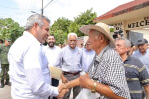 *El Aguaje, Aguililla, 17 de mayo del 2022.-* El gobernador Alfredo Ramírez Bedolla anunció que, en coordinación con la federación, se trabaja estratégicamente para recuperar las carreteras y reactivar la productividad de los municipios de la Región Tepalcatepec.