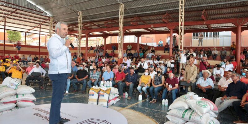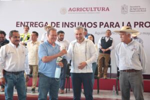 “Estamos muy contentos de estar con ustedes, porque han sido tiempos difíciles y complicados para esta región del estado y ahora cuentan con carreteras libres para el tránsito, acciones que benefician a productores, ganaderos y habitantes, por eso, hoy venimos a apoyarlos con la entrega de insumos para la producción agropecuaria del municipio”, señaló.