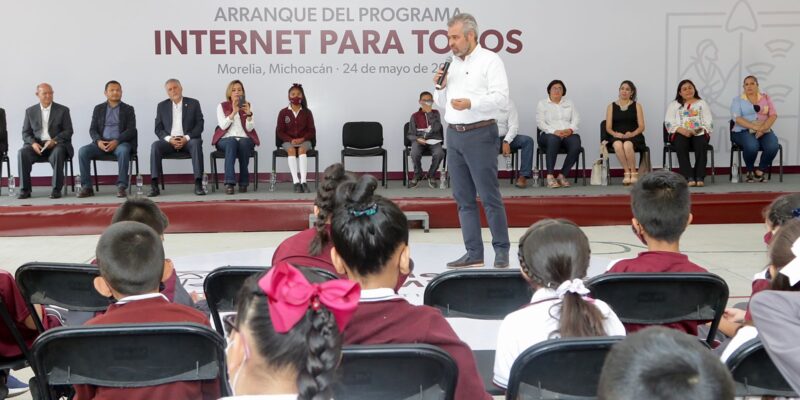 Teniendo como sede las instalaciones de la Escuela Primaria Urbana Federal 20 de Noviembre de Morelia, el mandatario dio inicio a este proyecto y señaló que el internet ya es un derecho social y humano para acceder a la información, “y con ello, las y los maestros puedan preparar sus clases y las y los alumnos realizar sus tareas”, dijo.