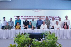 En la firma de este convenio también participaron la secretaria general de Gobierno de Colima, Ma. Guadalupe Solís Ramírez y su homólogo michoacano, el secretario de gobierno del vecino estado, Carlos Torres Piña, quienes serán los responsables operativos de dar seguimiento puntual a este acuerdo signado por la gobernadora Indira Vizcaíno y el gobernador Alfredo Ramírez.