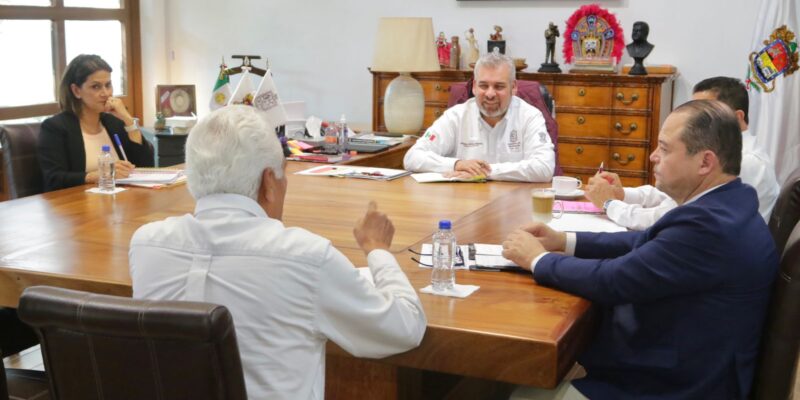 *Morelia, Michoacán, 20 de julio 2022*.- El gobernador Alfredo Ramírez Bedolla sostuvo reunión de trabajo con Esther Pedraza Santos y Feliciano Flores Anguiano, quienes acaban de asumir el cargo como delegados de Diconsa y Seguridad Alimentaria Mexicana (Segalmex) en Michoacán, respectivamente.