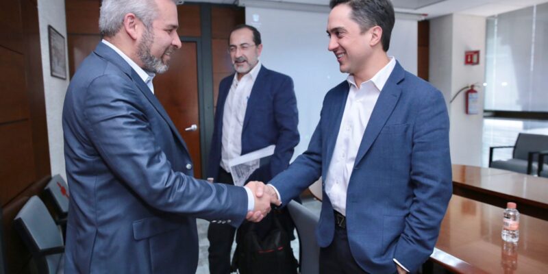 *Ciudad de México, 21 de julio del 2022.-* El gobernador Alfredo Ramírez Bedolla y el director general de Banobras, Jorge Mendoza Sánchez, revisaron esquemas de refinanciamiento para avanzar, en los mejores términos, con el proceso de reestructuración de créditos adquiridos por anteriores administraciones.