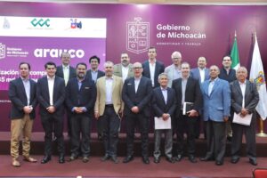 *Morelia, Michoacán, 26 de octubre del 2022.-* El gobernador Alfredo Ramírez Bedolla y el director general de Arauco, José Manuel Hernández, formalizaron una inversión por 4 mil 700 millones de pesos (235 millones de dólares), para la construcción de una planta de producción de materiales forestales sostenibles para la industria en Zitácuaro.