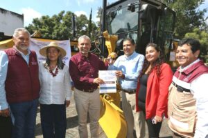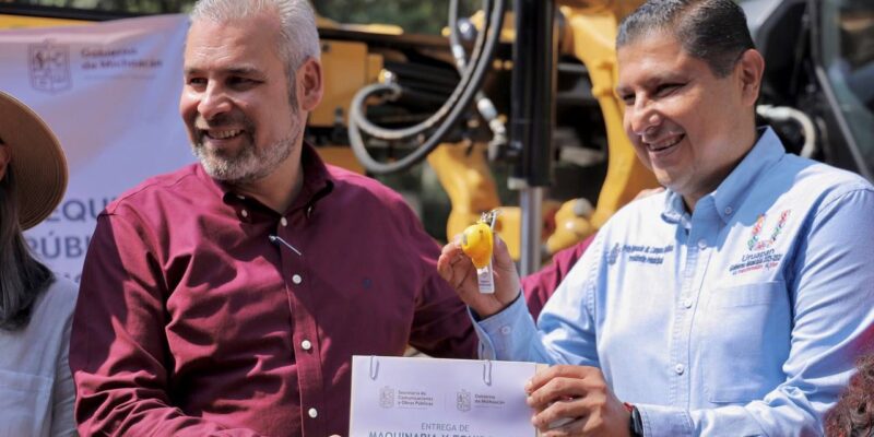 Uruapan, Mich a 28 de Octubre del 2022.- Gracias a un acuerdo entre municipios y gobierno del estado, el día de hoy se entregó maquinsria pesada a los municipios de Uruapan, Cherán, Lázaro Cárdenas, Arteaga, Charapan, Nuevo Urecho, Nuevo Parangaricutiro, Tancítaro y Tumbiscatío. Con una inversión superior a los 29 millones de pesos.