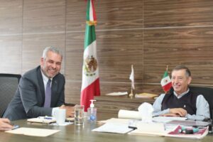 *Ciudad de México, 3 de noviembre del 2022.-* Con el propósito de que este año se incorporen al régimen de servicios médicos del ISSSTE, 5 mil 298 trabajadores jubilados y pensionados del sector educativo estatal, el gobernador Alfredo Ramírez Bedolla se reunió con el director general de dicho instituto, Pedro Zenteno Santaella.