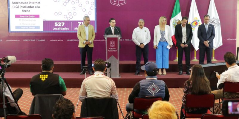 Anunció también que la CFE tiene proyectado instalar otras 270 antenas en Michoacán, buscando beneficiar a 216 comunidades en 77 municipios con conectividad a internet y telefonía; de las cuales, 95 ya están en proceso y 2 se encuentran operando actualmente.