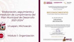 A través de una videoconferencia, fue otorgado a Uruapan el reconocimiento de la Guía Consultiva de Desempeño Municipal y Buenas Prácticas Municipales 2022; al igual que otros cinco municipios del país.