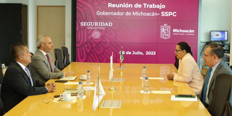 *Ciudad de México, 6 de julio de 2023.-* Para reforzar la estrategia de prevención y atención a la violencia, el gobernador Alfredo Ramírez Bedolla y la secretaria de Seguridad y Protección Ciudadana (SSPC) del Gobierno de México, Rosa Icela Rodríguez Velázquez, consolidarán la coordinación institucional para disminuir y combatir el delito de homicidio doloso en Michoacán.