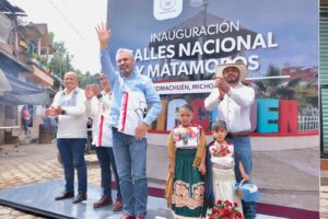 Acompañado por el secretario de Gobierno, Carlos Torres Piña, Ramírez Bedolla inauguró la pavimentación de las calles Nacional y Matamoros de Comachuen, con una inversión federal de mil 700 millones de pesos, y la calle Nochebuena de Sevina, con inversión Faeispum de más de un millón de pesos y dio arranque a los trabajos de construcción de la calle Prados Verdes de la misma localidad.