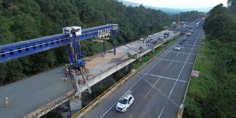 Por su parte, el residente de la obra, Antonio Ramírez, explicó al gobernador que actualmente se realizan trabajos con una máquina lanzadora de trabes, encargada de transportarlas y colocarlas en el puente, lo que optimiza los tiempos de desarrollo en este tipo de megaobras.