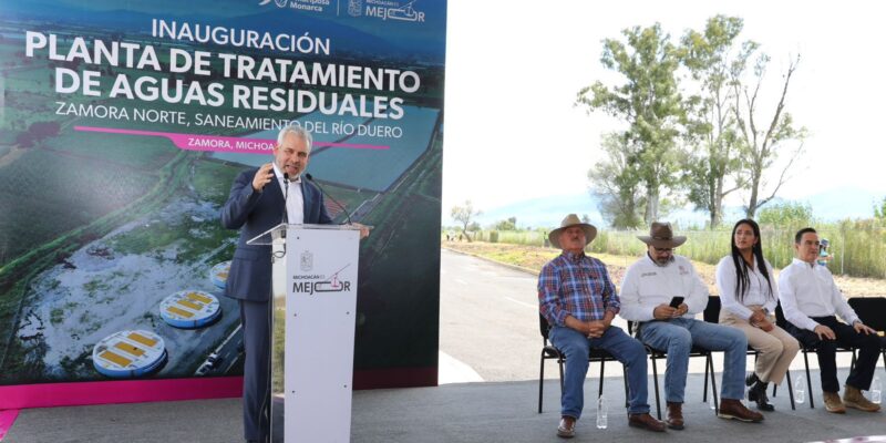 *Zamora, Michoacán, 26 de septiembre de 2025.-* El gobernador Alfredo Ramírez Bedolla inauguró en Zamora una planta de tratamiento de aguas residuales, con la que el municipio logrará que el 100 por ciento de sus aguas negras sean saneadas, para beneficio de más de 200 mil habitantes y de productores agrícolas de la región.