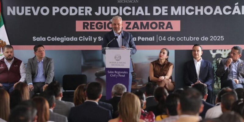 *Zamora, Michoacán, 4 de octubre de 2025.-* El gobernador Alfredo Ramírez Bedolla realizó la inauguración de las salas judiciales de segunda instancia colegiada civil y unitaria penal, a través de las cuales se acercará la justicia a 637 mil habitantes de 13 municipios del estado que comprenden los distritos de Zamora y Zacapu.