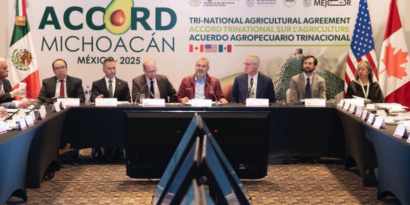 *Morelia, Michoacán, 17 de octubre de 2025.-* Con el Acuerdo Agropecuario Trinacional que se genera en el marco de la revisión del Tratado entre México, Estados Unidos y Canada (T-MEC), donde participan delegaciones de empresarios agrícolas, ministros de provincias de Canadá y secretarios de Agricultura de estados de la unión americana, se reafirma alianza comercial del sector agropecuario de los tres países, así lo señaló el gobernador Alfredo Ramírez Bedolla.