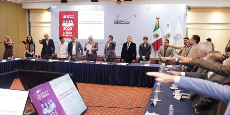 *Morelia, Michoacán, 17 de octubre de 2025.-* El gobernador Alfredo Ramírez Bedolla instaló y tomó protesta a los integrantes del Comité Promotor de Inversiones de Michoacán, quienes aprobaron firmar y enviar a la presidenta Claudia Sheinbaum Pardo, un pronunciamiento para mostrar respaldo del sector productivo y empresarial a su política económica y a las negociaciones que vendrán del nuevo Tratado entre México, Estados Unidos y Canadá (T-MEC) en 2026.