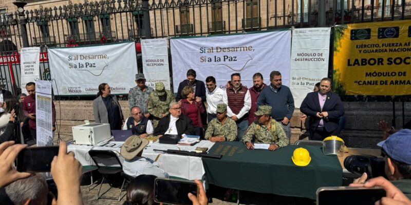 Como parte central de la feria, se instaló el Módulo de Desarme Voluntario, donde se recibió y destruyó un arma larga. El programa ofrece incentivos económicos a quienes entregan armas de manera anónima, con montos que van desde 680 a mil 220 pesos para armas hechizas, de 5 mil 605 a 22 mil 940 pesos para armas cortas según calibre, y hasta 32 mil 960 pesos para fusiles automáticos exclusivos del Ejército. También se reciben escopetas, rifles, cartuchos, granadas y cargadores con montos diferenciados para armas útiles o inutilizables, conforme al tabulador oficial.