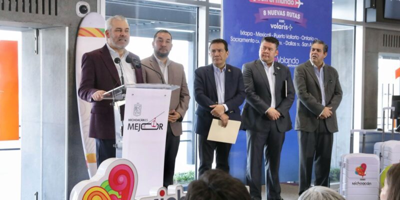 El mandatario destacó que las ocho nuevas rutas de la aerolínea Volaris permitieron un incremento del 15.4 por ciento de pasajeros al aeropuerto de la capital michoacana con respecto al 2024, al pasar de un millón 304 mil 600 a 1.5 millones el año pasado.