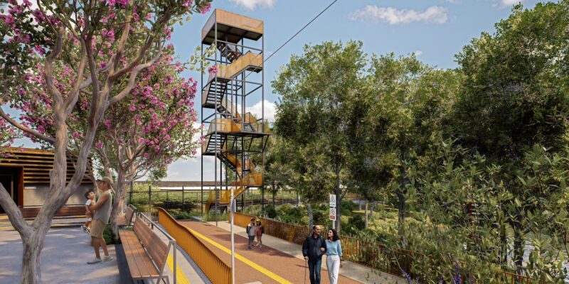 En el último recorrido de supervisión de la obra, la funcionaria estatal revisó el montaje del equipamiento y áreas del parque ecoturístico, donde además se habilitará un sendero seguro y puente, así como guía podotáctil, canchas de básquet, quioscos, foro de eventos y juegos infantiles.